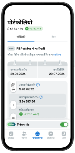 FISP investments are designed for a 6-month term. During the first 6 months of trading, the guaranteed profit is at least 50% of the invested funds. After the first 6 months, the program can be extended for another 6-month period, during which the guaranteed return will be 15%.